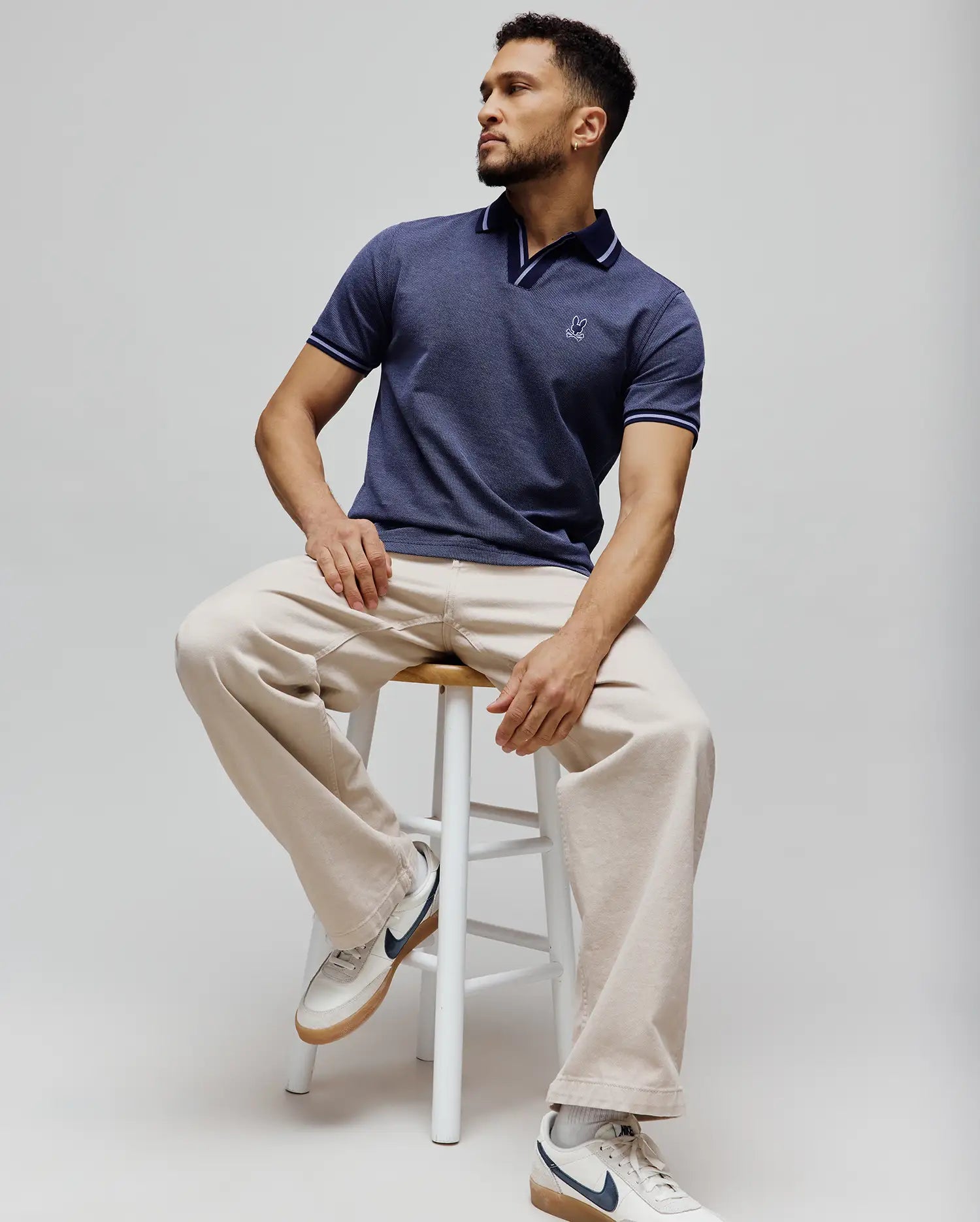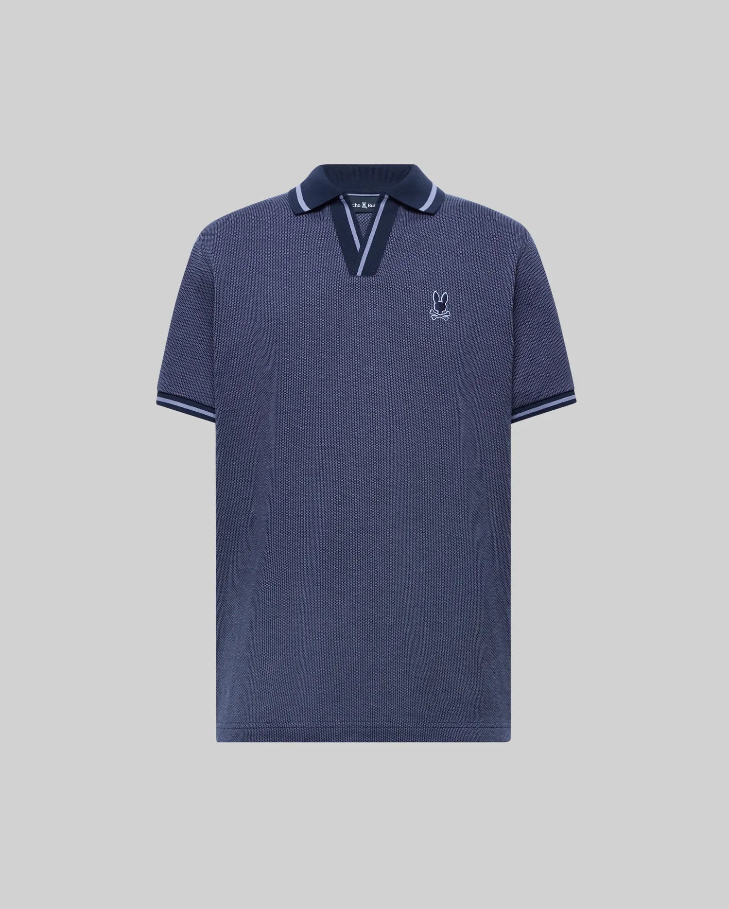 The Josiah Johnny Collar Jacquard Polo is knit from 100% Pima cotton. It features a tonal outline Bunny and a Johnny collar.