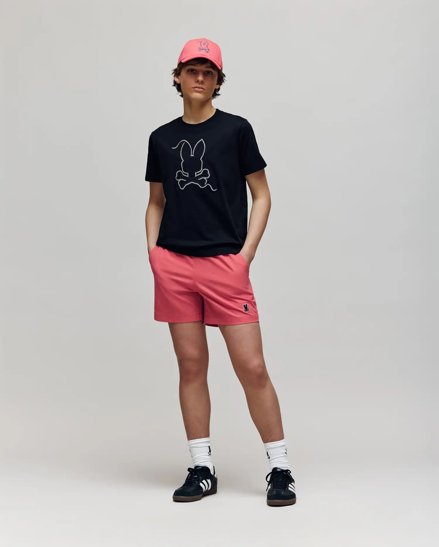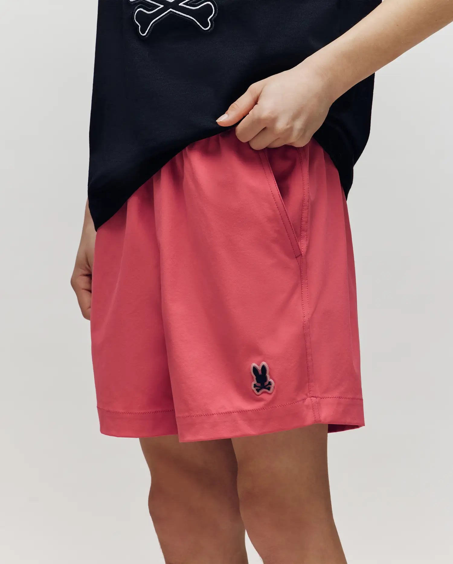 The Samos swim trunk features hydrochromic technology. which reveals a hidden Bunny pattern when the shorts come in contact with water. Mesh lining and a drawstring-stretch waistband allow for next-level comfort. Waterproof bag included in back pocket.