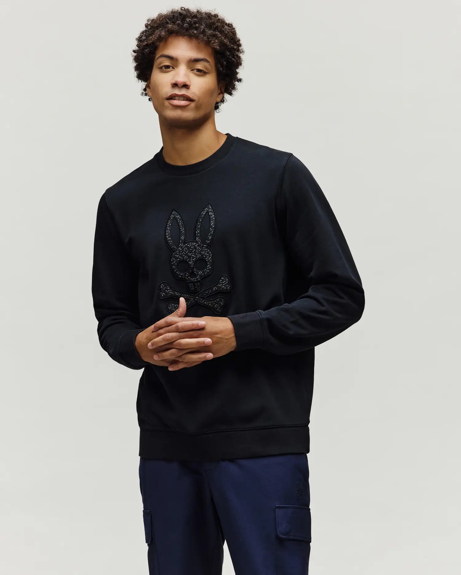Rib knit crewneck. cuffs. and hem