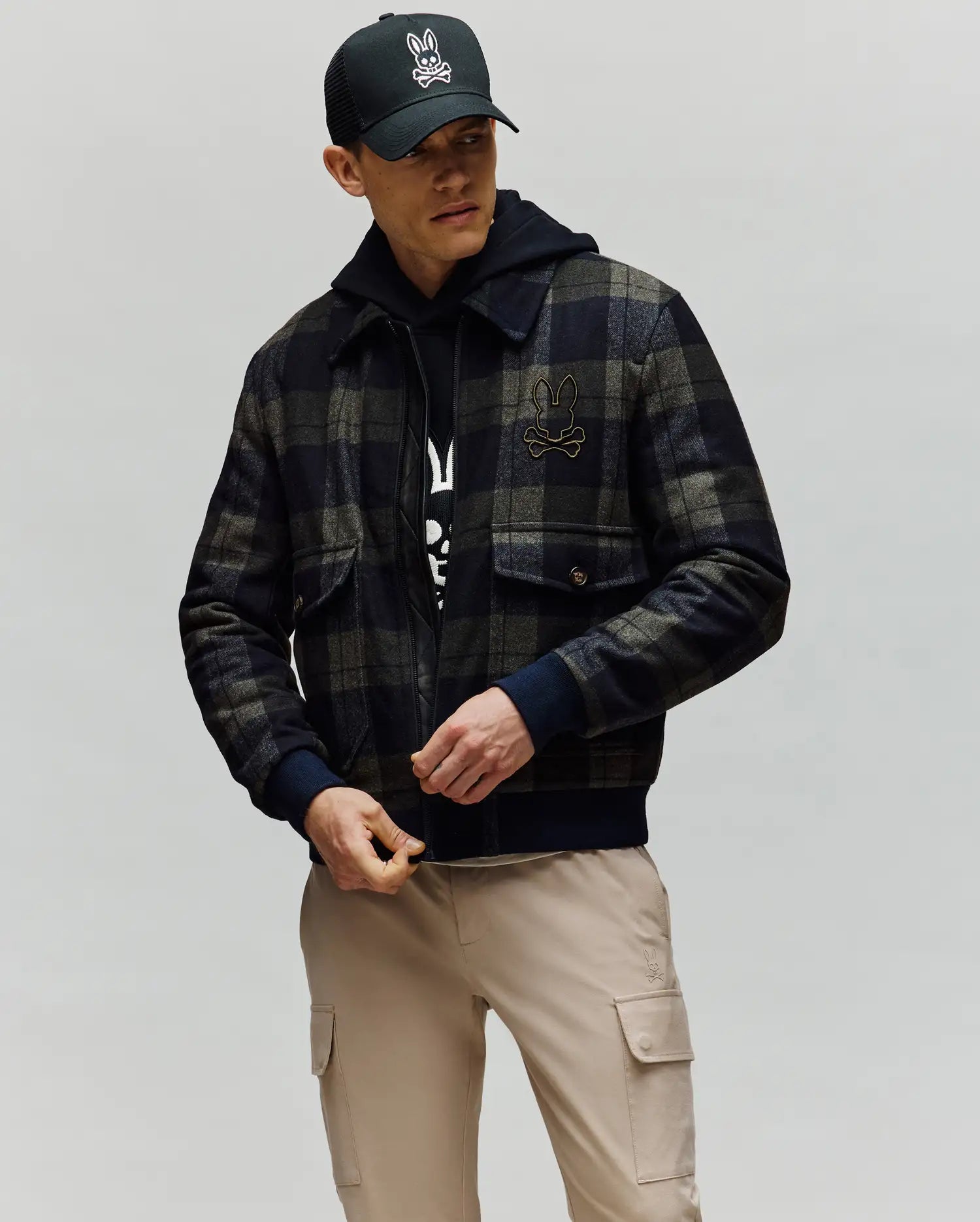 A bomber jacket done better. The Gavin Jacket is woven from a premium wool blend with a sharp. structured silhouette. Featuring a collar built for the elements. carry-all pockets. and flexible ribbing at the collar and hem.