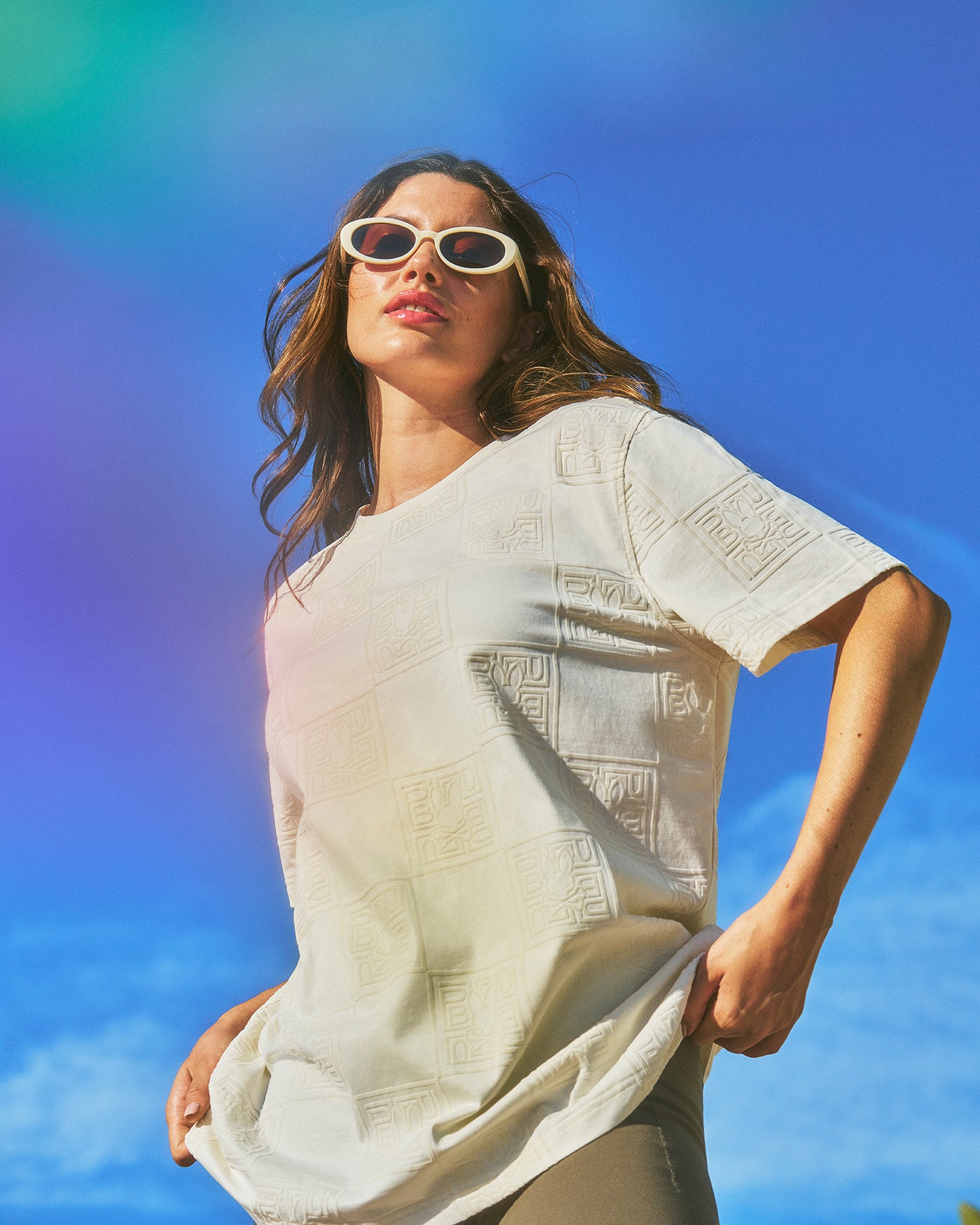The Gio Tee brings texture to the spotlight. Soft cotton base. flocked logos all over??it’s got that subtle raised feel that makes you look twice. Laid-back fit. standout finish.