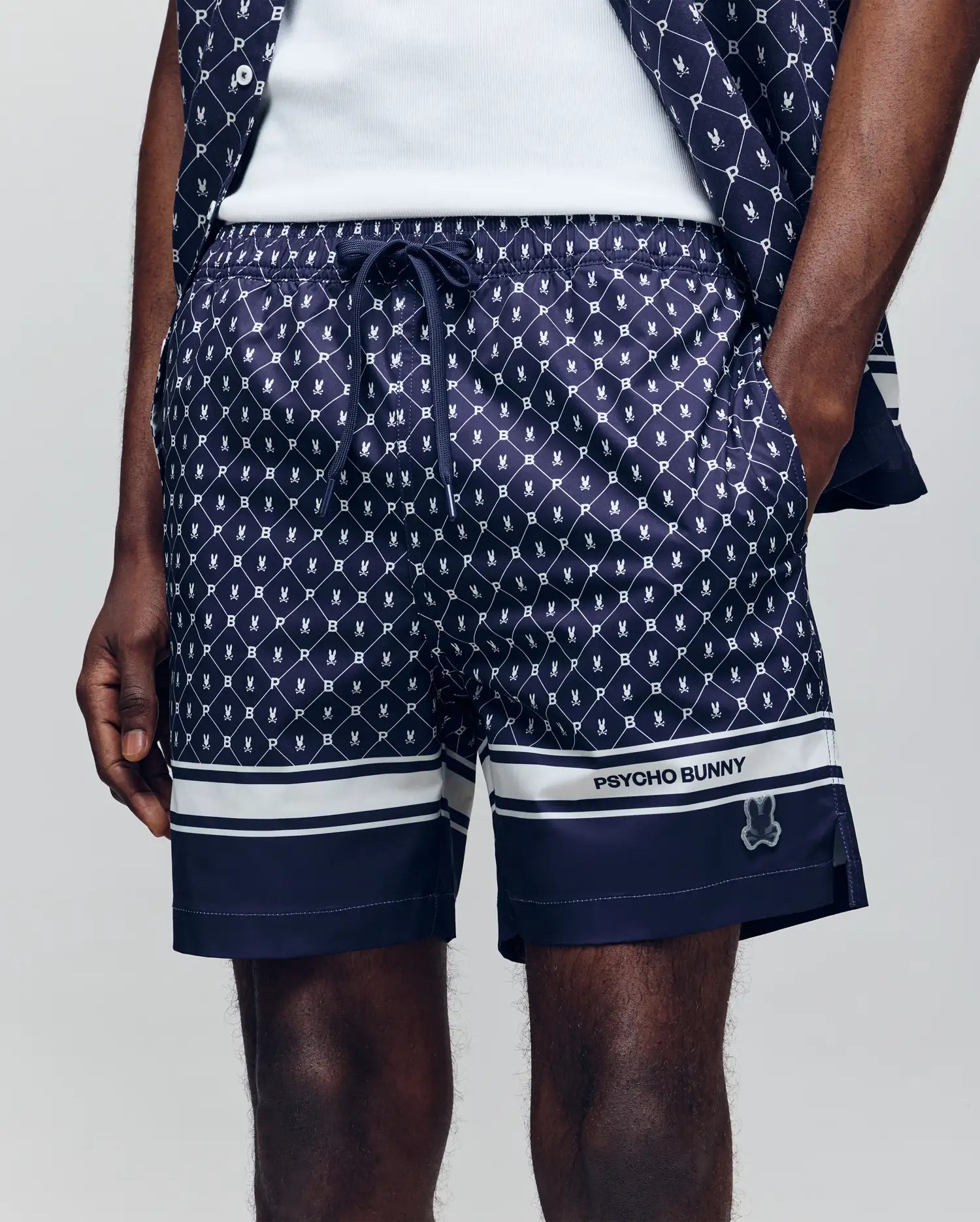 For a good time. just add water. And a matching set. We worried about the details ??that all over Bunny pattern and bold hem. the quick dry body and no-chafe netting ??so you can worry about the important stuff. like your tan. Waterproof bag included in back pocket. Water not included.