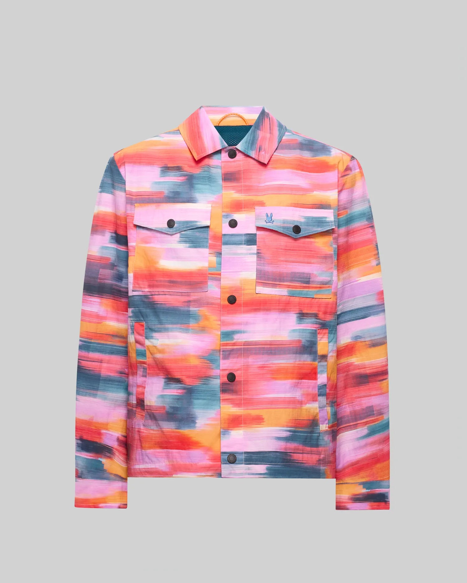 Impossible to ignore. The Raphael Digital All-Over-Print Jacket is a masterclass in self-expression. Featuring a high-definition wordmark print on premium nylon. it combines a classic fit with a sharp button-front finish for bold style and total comfort.